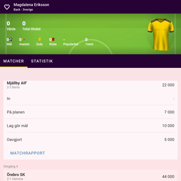 Utförlig statistik som visar både spelarens prestation i verkligheten och på ditt managerlag.