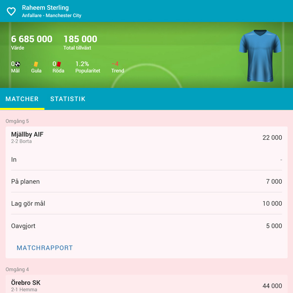 Utförlig statistik som visar både spelarens prestation i verkligheten och på ditt managerlag.