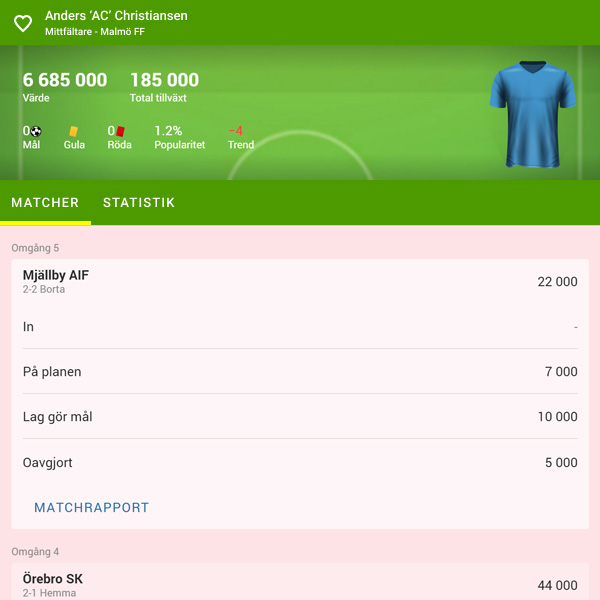 Utförlig statistik som visar både spelarens prestation i verkligheten och på ditt managerlag.